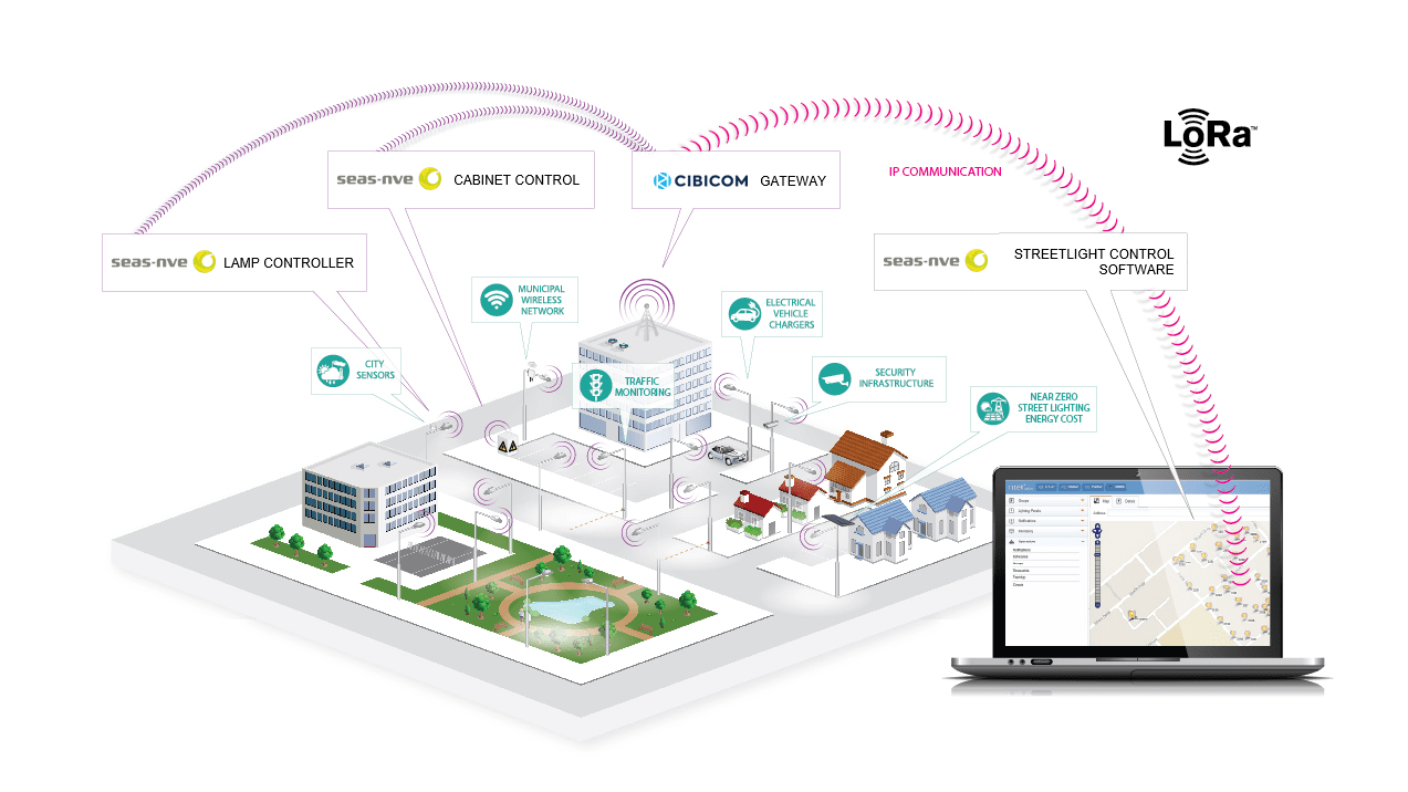 Forestil dig en lille by, hvor der placeres bevægelsessensorer langs gaderne. Efter et bestemt tidspunkt (når mørket falder på) aktiveres sensorerne, og når de registrerer bevægelser, sendes der et signal til en gateway. Gatewayen sender signalet videre til Network Server, der yderligere er koblet til en applikation, der styrer gadelamperne i byen.